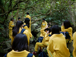 這是我們今天踏尋樹梅坑溪的終點,我們腳底下是乾淨的樹梅坑溪流過,我們坐在一顆顆的大石頭上,我們頭上就是密布的樹枝和樹葉。聽著溪水聲,這一切很不可思議,和流過竹圍社區的樹梅坑溪很不一樣,有著原始自然溪流的樣貌、有著豐富的綠色植物、有著乾淨的空氣。