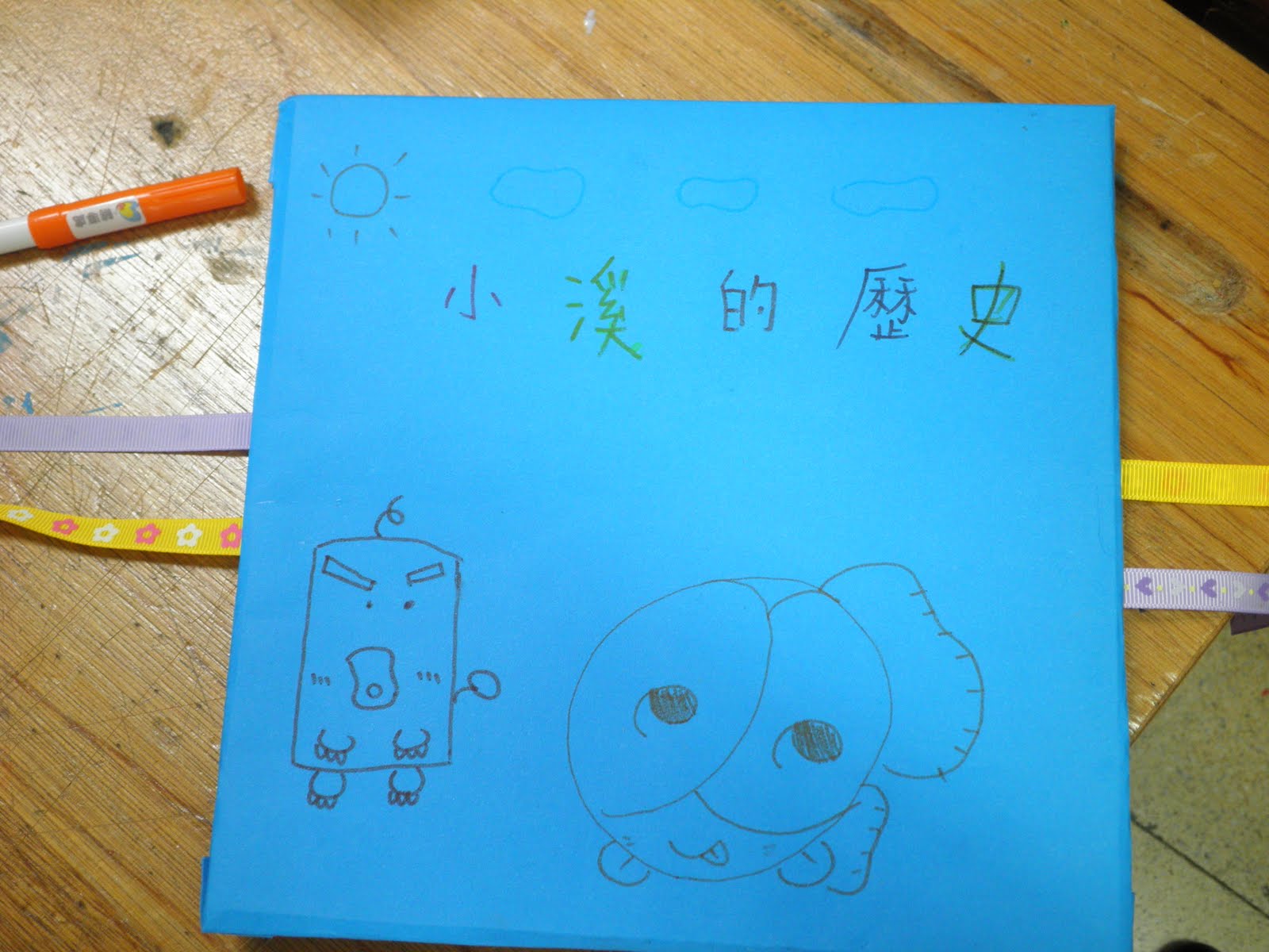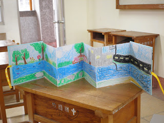 由於製作的是拉頁書,所以一打開來就是一條長長的小溪。當然小溪個有不同的風貌,那同學心目中的美麗小溪是怎樣的風貌呢?跟他們所看到的樹梅坑溪有相似的地方嗎?